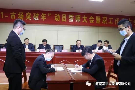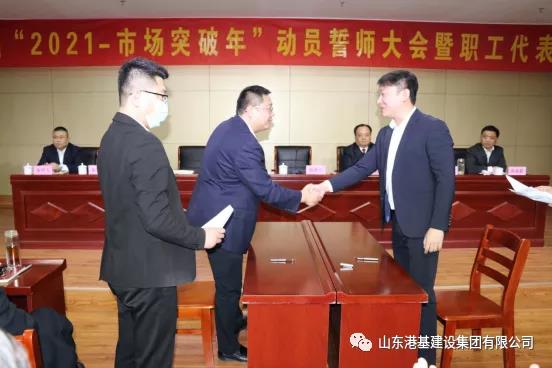 2021年2月25日,山東港基建設集團召開(kāi)“2021-市場(chǎng)突破年”動(dòng)員誓師大會(huì )暨職工代表大會(huì ),集團領(lǐng)導楊連玉書(shū)記、楊秀川董事長(cháng),各公司總經(jīng)理、全體人員參加會(huì )議。